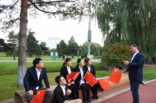 交易二部黨支部組織全體成員集結(jié)在紅色文化廉政廣場,開展“禮贊新時代,共祝祖國好”主題黨日活動,重溫新中國壯麗71年的輝煌成就,抒發(fā)誠摯的愛國情懷?!白屛覀儾煌跣?,銘記歷史,奮發(fā)自強,砥礪前行!”