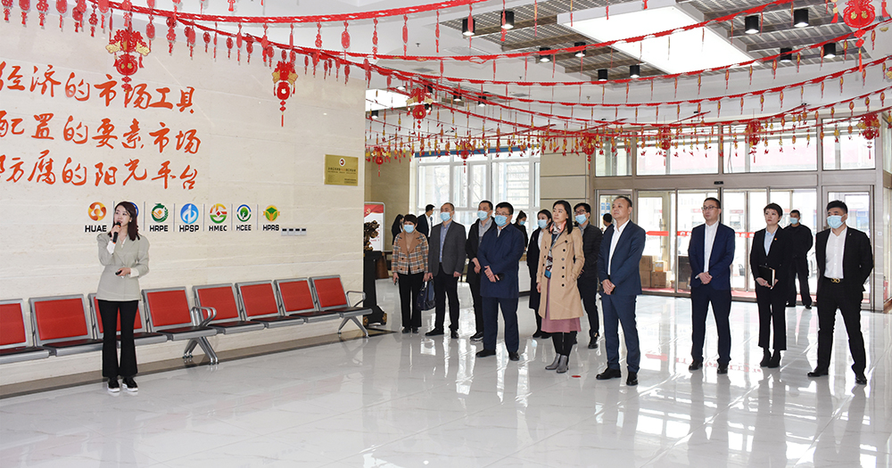 座談前,來訪客人在集團(tuán)一樓業(yè)務(wù)大廳通過講解員介紹,詳細(xì)了解了交易集團(tuán)發(fā)展情況和各板塊業(yè)務(wù)開展情況。