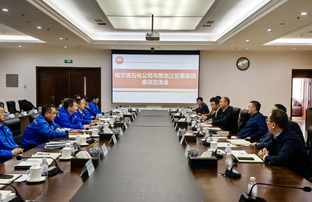 祁興國對交易集團(tuán)到訪表示熱烈歡迎。他說,中國石油哈爾濱石化分公司深入貫徹習(xí)近平總書記關(guān)于“以‘油頭化尾’為抓手,推動石油精深加工”的重要指示要求,依托大慶原油、俄羅斯原油資源,提高質(zhì)量效益,調(diào)整煉化結(jié)構(gòu),持續(xù)優(yōu)化和低成本發(fā)展,為龍江經(jīng)濟(jì)持續(xù)健康發(fā)展做出了積極貢獻(xiàn)。交易集團(tuán)作為龍江唯一的省級要素交易市場,以市場化服務(wù)功能助力龍江改革發(fā)展。希望以本次座談交流為契機(jī),進(jìn)一步加深溝通了解,共享資源優(yōu)勢,在危廢資產(chǎn)處置、綠色低碳發(fā)展、黨建合作共建等領(lǐng)域探索合作空間,推動雙方合作走深走實(shí),為實(shí)體經(jīng)濟(jì)和區(qū)域經(jīng)濟(jì)的持續(xù)增長提供有力支撐。座談會前,雙方共同參觀了中國石油哈爾濱石化分公司的廠區(qū)和企業(yè)文化展室,觀看了雙方企業(yè)宣傳片。
